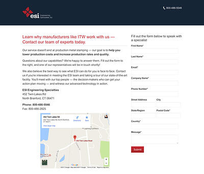 我们决定将此提交给我们的联系人页面的测试,了解我们的客户,他们专注于定制金属冲压,工程专业,Inc。现在,您可能会认为,诸如页面的哪一面是诸如形式的哪一方的铅生成差异很小,但相反,我们已经看到了更简单的调整在表单上方添加箭头像疯狂一样转换。