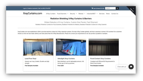 xraycurtains.com总部位于德克萨斯州林地。他们提供用于屏蔽医疗成像机,安全扫描仪和食品扫描仪的产品。他们所有的窗帘都没有铅。